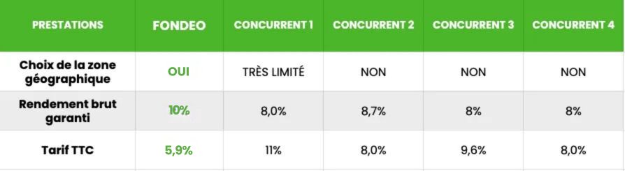 Avec des rendements potentiellement plus élevés que ceux de nos concurrents (10% vs ≈8% de rendement brut), notre proposition vous garantit une rentabilité accrue.